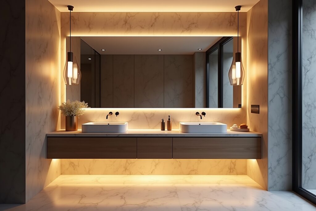| Funktionsbeleuchtung | Gezielte Ausleuchtung für Tätigkeiten (z.B. Spiegel) | Spiegelleuchten, Uplights/Downlights am Spiegel | Hohe Farbwiedergabe (CRI > 90), keine Schattenbildung |