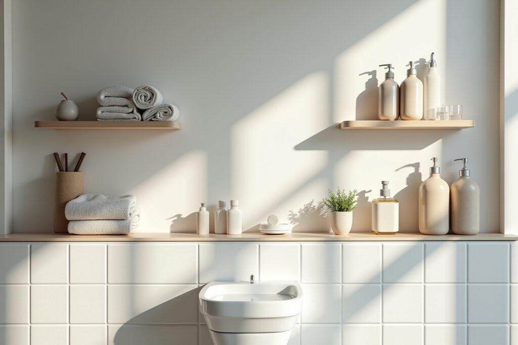 - Dekorative Seifen und Lotionen: Verwende schöne Seifenspender und Lotionflaschen, um deine Regale aufzuwerten.