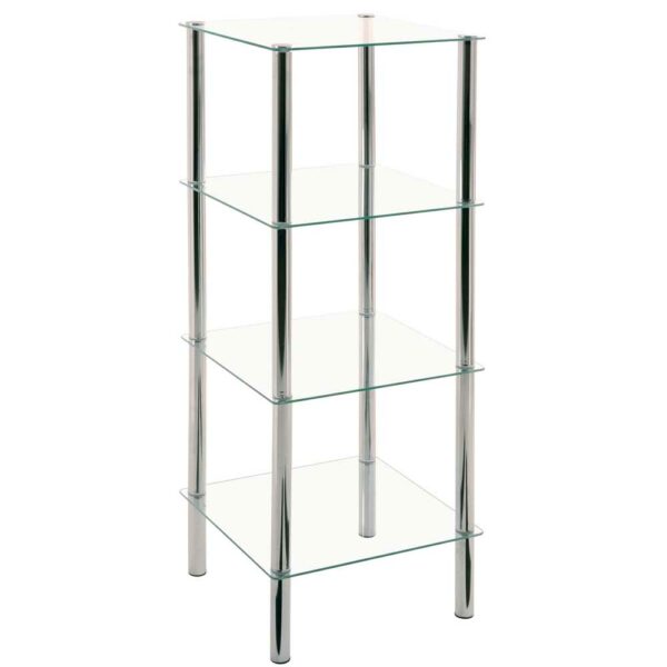 Unser Standregal besticht durch sein schlichtes und doch raffiniertes Design, das sich nahtlos in jedes Badezimmerambiente einfügt. Die klaren Linien und die hochwertigen Materialien verleihen Ihrem Badezimmer einen Hauch von modernem Minimalismus, ohne dabei auf Wärme und Gemütlichkeit zu verzichten. Die vier Glasböden bieten ausreichend Platz für Handtücher, Kosmetika, Duftkerzen oder dekorative Elemente. So schaffen Sie im Handumdrehen Ordnung und verwandeln Ihr Badezimmer in einen Ort, an dem Sie sich gerne aufhalten.